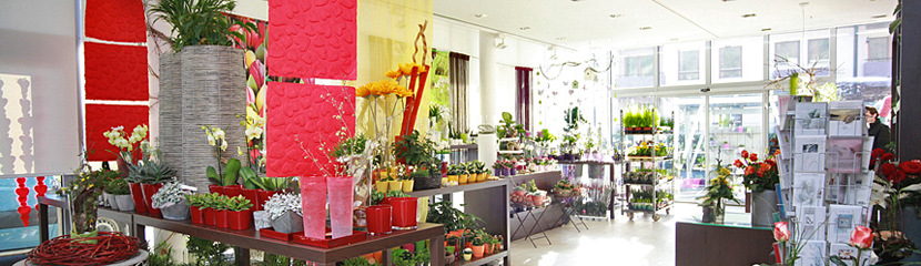 Das Sortiment umfasst eine große Auswahl aus Schnittblumen, Topfpflanzen, Keramik, Seidenblumen und Accessoires.